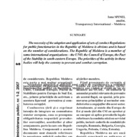 The necessity of the adoption and application of sets of conduct Regulations for public functionaries in the Republic of Moldova is obvious and is based on the number of considerations. The Republic of Moldova is a member of some international organizations – the UNO, the Council of Europe, the Pact of the Stability in south-eastern Europe. The priorities of the activity in these bodies will help the country to prevent and combat corruption.