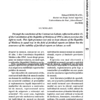 Through the conclusion of the Contract on Labour, reflected in article 43, of the Constitution of the Republic of Moldova of 1994 a citizen exercises the right to work. This right presumes not only to treat citizens of the Republic of Moldova in equal way in the field of juridical reports on labour but the assurance of the stability of juridical reports on labour, as well.