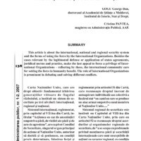 This article is about the international, national and regional security system and the forms of using the force by the International Organizations. Besides the cases relevant by the legitimated defense or application of states agreements, juridical norms and practice, make the last appeal to force a privilege of International Organizations – reflecting by these, the international community care for setting the force in humanity benefit. The role of International Organizations is prominent in debating and solving different conflicts.