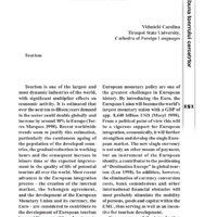 Tourism is one of the largest and most dynamic industries of the world, with significant multiplier effects on economic activity. It is estimated that over the next ten to fifteen years demand in the sector could double globally and increase by around 30% in Europe (Torres Marques 1998). Recent worldwide trends seem to justify this estimation,