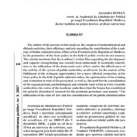 The author of the present article analyzes the complex of methodological and didactic activities, their efficiency and role regarding the contribution of the Academy of Public Administration, Office of the President of the Republic of Moldova, in the promotion of the State policy in the field of public service in our country. The scholar mentions that the Academy’s Action Plan regarding the development and capacity strengthening has recently been elaborated. It essentially contributes to the edification of the democratic state of law and to the effectiveness of the activity of the system of public authorities at all levels. In the context of the fulfillment of the stringent opportunities for a more efficient promotion of the State policy in the field of public administration, the optimization of the training and evaluation system of the personnel, as well as, the need for the consolidation of the organizational, methodological and scientific basis of the activity of public authorities, the rector of the Academy underlines that the Senate has established the priority direction of research for the academic personnel, and namely “The edification of the state of law and the consolidation of the public administration.