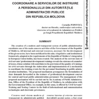 The creation of a modern and transparent system of public administration constitutes one of the main concern activities of the Government of the Republic of Moldova. All internal and external resources, necessary for the development of the given sector, have been mobilized in this aim. A legislative and institutional framework, adapted to the requirements of the Republic of Moldova’s integration in European Union bodies, has been created. The analysis of the current state of civil servants’ professional development trainings reveals the existence of a number of issues, whose solution will contribute to the provision of the quality of trainings for civil servants through the elaboration and implementation of a mechanism to coordinate the training events for the personnel functioning in public administration institutions. The proposed mechanism presupposes the formulation of clear demands forwarded to the trainers of professional development courses for central and local public administration personnel. The management of the proposed mechanism will be carried out by the Academy of Public Administration, Office of the President of the Republic of Moldova, in collaboration with the Governmental Office. An example, in this sense, is offered by Civil Servants’ Training and Testing Centers in the field of informational and communication technologies and electronic governance.