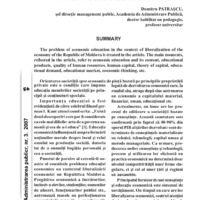 The problem of economic education in the context of liberalization of the economy of the Republic of Moldova is treated in the article. The main moments, reflected in the article, refer to economic education and its content, educational products, quality of human resources, human capital, theory of capital, educational demand, educational market, economic thinking, etc.