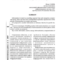Information is treated as something separate from such categories as matter and energy. More and more facts and identified regularities signal in favor of the priority of information over matter and energy. It is proposed to consider information as substance that has its specific features. Concrete technologies of building modern information databases are named and measures for the intensification of informatization of all the spheres of the society’s activity are proposed.