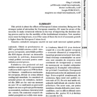 This article is about the effects of European Unions extension. Being now the strongest point of attraction for European countries, EU must be aware of the necessity to make structural reforms in the way of improving the decision taking process and to rise the mobility of the institutional structure. New member states must be helped now, even if for some of them the level of economic growth is higher than the European Unions level.