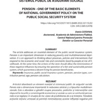 Articolul abordeaza un element esențial al sistemului public de asigurari sociale. Pensia este o dimensiune importanta în reducerea saraciei și a lipsurilor multidimensionale. Este o abordare a gândirii asupra proceselor, politicilor și intervențiilor care raspund la riscurile și constrângerile economice și sociale cu care se confrunta persoanele ce se regasesc în situația de risc vizavi de posibilitatea de a se întreține. Totodata, acțiunile statului urmeaza sa permita minimalizarea acestor influențe negative prin asigurarea funcționarii unui sistem de pensii echitabil și sustenabil, care sa garanteze un trai decent beneficiarilor de pensii.