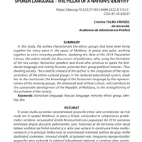 TULBU-FRUNZE, Cristina. Limba vorbită - pilon al identitații unui popor. In: Administrarea Publică, 2022, nr. 3(115), pp. 111-117. ISSN 1813-8489. DOI: https://doi.org/10.52327/1813-8489.2022.3(115).11