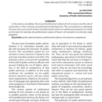 In this article, we address the issue of professional culture of civil servants and the role of universities in their training and professional development. The contradictions underlying the issue, the essence and content of professional culture are addressed; proposals are made on the tools for training the professional culture of future civil servants in university study programs.