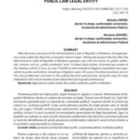 After the entry into force of the Administrative Code of Republic of Moldova, the legal person under public law becomes a complex research topic. Taking into account the fact that, the Administrative Code of Republic of Moldova operates only with the notion of ,,public authority”, notions such as ,,public institution” and / or those legal entities of private law remain in the shadows which, in turn, by Law 714/200 on administrative litigation (repealed) were equivalent to public authorities, including in litigation cases. Of course, the above positions are not the only problematic moments in the judicial doctrine and practice, along the way the issue indicated in this article remains to be researched and argued continuously.