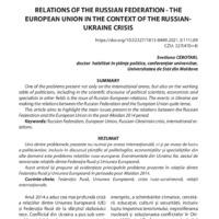 CEBOTARI, Svetlana. Relațiile Federația Rusă - Uniunea Europeană în contextul crizei ruso-ucrainene. In: Administrarea Publică, 2021, nr. 3(111), pp. 90-97. ISSN 1813-8489. DOI: https://doi.org/10.52327/1813-8489.2021.3(111).09