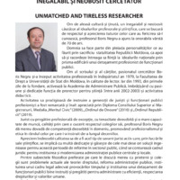 Om de aleasă cultură și ținută, un inegalabil și neobosit căutător al idealurilor profesorale și științifice, care se bucură de respectul și aprecierea tuturor celor care au fericirea să-l cunoască, profesorul Boris Negru a ajuns la onorabila vârstă de 70 de ani.