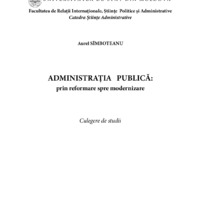 Sîmboteanu, Aurel. Administraţia publică: prin reformare spre modernizare: Culeg. de studii / Aurel Sîmboteanu; Univ. de Stat din Moldova, Fac. de Relaţii Intern., Ştiinţe Politice şi Administrative, Catedra Ştiinţe Administrative. – Ch.: CEP USM. – 348 p. Bibliogr.: p. 346. – 50 ex.