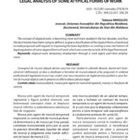The concept of atypical work, is becoming more and more studied in the last decades, and thus the doctrinaires have been trying to define it, to give a classification of the atypical forms of work and to make proposals with regards to improving the labor legislation or creating a new mechanism of legal regulation of some atypical forms of work which are currently outside of the legal framework.
