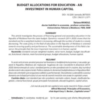 MANOLE, Tatiana. Alocațiile bugetare pentru educație – o investiție în capital uman. In: Administrarea Publică, 2020, nr. 2(106), pp. 44-50. ISSN 1813-8489. DOI: https://doi.org/10.5281/zenodo.3875035