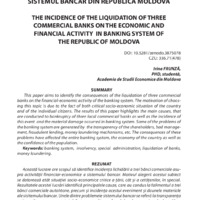Această lucrare are scopul să identifice incidenţa lichidării a trei bănci comerciale asupra activității financiar-economice a sistemului bancar. Motivul alegerii acestui subiect se datorează atât situației socio-economice critice a țării, cât și a cetățenilor, în special. Rezultatele acestei lucrări identifică principalele cauze, care au condus la falimentul a trei bănci comerciale autohtone, precum și incidența acestui eveniment și daunele materiale ale sisitemului bancar. Unele dintre problemele sistemului bancar se referă la transparența acționarilor, managementul defectuos, creditarea frauduloasă, mecanismele de spălare a banilor etc. Consecinţele acestor probleme au afectat întregul sistem bancar, economia ţării, precum şi încrederea populaţiei.