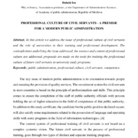 In this article we address the issue of professional culture of civil servants and the role of universities in their training and professional development. The contradictions underlying the issue addressed, the essence and content of professional culture are addressed, proposals are made on the tools for training the professional culture of future civil servants in university study programs.