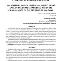 The scientific study on the establishment of the material or immaterial object of the crime material or immaterial object of evidence falsification reflects a major need, because it is important to identify the entity against whose values and social relations the criminal act violates. The legal image or the normative skeletal portrait of the offenses object of evidence falsification in both a criminal and a civil trial would not be complete and fully fulfilled without achieving a scientific characteristic of the material (immaterial) object of these socially dangerous facts. The present scientific approach has primary objective to identify and analyze the essence of the material or immaterial object of the offenses of evidence falsification, provided by two typical variants in the Criminal Law of the Republic of Moldova.