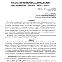 Eficienţa, din punct de vedere al costului, conformitatea legală, protecţia mediului şi promovarea inovării reprezintă priorităţi ale domeniului de achiziţii publice. Autorităţile publice îşi îndeplinesc funcţiile strategice când acţionează în vederea încheierii unui nou contract de achiziţii publice, deci trebuie să se bazeze tot pe un plan strategic în acest sens. Nu este suficient să se urmeze planul anual de achiziţii publice, este necesar sa existe şi o strategie anuală de achiziție publică. Articolul de faţă încearcă să accentueze anumite aspecte neglijate în procesul de planificare a achiziţiilor publice şi propune excluderea acestor deficienţe prin adoptarea strategiei anuale de achiziţie publică pentru fiecare autoritate contractantă.
