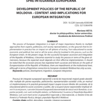Politici de dezvoltare a Republicii Moldova – conţinut şi implicaţii spre integrarea europeană