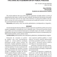 Articolul de față abordează problema statului ca generator al politicilor publice prin prisma analizei modalităților principale prin care se definește statul. Pornind de la premiza că politicile publice sunt instrumentele de bază pentru instituțiile majore ale statului în rezolvarea problemelor care apar în societate sunt analizate programele de acțiuni ce coordonează și modifică mediul economic, social, cultural, social.