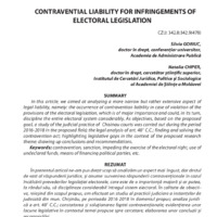 In this article, we aimed at analyzing a more narrow but rather extensive aspect of legal liability, namely: the occurrence of contravention liability in case of violation of the provisions of the electoral legislation, which is of major importance and could, in its turn, discipline the entire electoral system considerably. As objectives, based on the proposed goal, a study of the judicial practice of Chisinau courts was carried out during the period 2016-2018 in the proposed field; the legal analysis of art. 481 C.C.; finding and solving the contravention act; highlighting legislative gaps in the context of the proposed research theme; drawing up conclusions and recommendations.