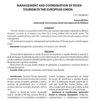 Turismul fluvial reprezintă un model de succes de valorificare a rețelelor fluviale, în special, în țările din Europa Occidentală. Apariția sa a fost determinată de o puternică intenționalitate politică și acțiune publică. Caracterul vulnerabil, pluridisciplinar și, de multe ori, multinațional al domeniului fluvial necesită o gestiune complexă. Acest articol are ca scop studiul modului de gestionare și coordonare a turismului fluvial în Uniunea Europeană.
