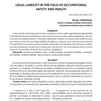 In this article, a brief research has been carried out on the matter regarding the legal liability in the field of security and health at work, taking into account the national legislation, the doctrine and the judicial practice. It has been stated that violation of security and health at work can lead to various forms of legal liability (disciplinary, material, contravention and criminal). The legal effects arising from work accidents and professional diseases, with reference to determining and paying an indemnity to the person, who lost his / her work capacity and, in case of death, to the members of the family, have been highlighted.