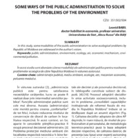 In this study, some modalities of the public administration to solve ecological problems by Republic of Moldova are addressed in the author’s vision.