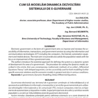 Guvernarea electronică sau termenul de e-guvernare urmărește să îmbunătățească și să sporească accesibilitatea la informații, a tranzacțiilor și serviciilor guvernamentale prin utilizarea tehnologiilor informaționale și de comunicații (TIC), inclusiv computere, internet, echipamente de automatizare și dispozitive mobile. Scopul principal este de a oferi și satisface nevoile populației cu accent pe îmbunătățirea zonei de guvernare electronică. Autorii introduc abordarea potențială pentru definirea sistemului ca o zonă dinamică de dezvoltare a sistemului de e-guvernare. Procedura de soluționare a modelului dinamic, descrisă în articol, care folosește metodele contemporane „Teoria ecuațiilor diferențiale” cu argument întârziat, poate fi folosită cu succes atât pentru modelarea relațiilor economice mai specifice, cât și pentru modelele economice în general și, de asemenea, sub diverse condiţii.