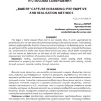 This topic is more relevant than ever in our society, thus, it seems appropriate to partially disclose certain ways of committing raiding in the banking sector. Undoubtedly, without applying for the final list of ways to commit raiding in the banking sector, as well as, well aware of the speed and level of development of our society, computer technology, etc., we believe that in the near future there will be new ways, which at the moment we can not foresee or determine, on the basis of this will undergo changes and will need improvement and methods of counteraction in the studied area.