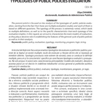 Articolul de faţă este focusat pe analiza tipologiilor de evaluare a politicilor publice, pornind de la faptul că există multiple studii de evaluare și fiecare dintre ele se bazează pe întrebări diferite. Tipologia procesului este extrem de variată, ceea ce conduce la definiţii multiple, precum şi la caracteristici specifice pe care fiecare tipologie a evaluării o presupune. Ne-am propus în acest sens caracterizarea principalelor modele ale evaluării, deoarece acestea joacă un rol decisiv în stabilirea trăsăturilor ciclului general al politicilor publice, precum şi în analiza lor.