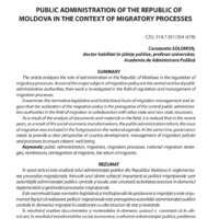 The article analyzes the role of administration in the Republic of Moldova in the regulation of migratory processes. As one of the major subjects of migration policy are the central and local public administrative authorities, their work is investigated in the field of regulation and management of migration processes. It examines the normative-legislative and institutional basis of migration management and argues that the realization of the migration policy is the prerogative of the central public administration authorities in the field of migration in collaboration with other state and non-state structures. As a result of the analysis of documents and materials in the field, it is noticed that in the recent years, as a result of the social-economic transformations, the public administration reform, the issue of migration was included in the foreground on the national agenda. At the same time, governance needs to provide a clear perspective of country development, management of migration policies and processes to ensure citizens’ well-being.