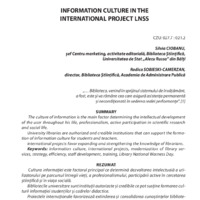 Cultura informaţiei este factorul principal ce determină dezvoltarea intelectuală a utilizatorului pe parcursul întregii vieţi, a profesionalismului, participării active în cercetarea ştiinţifică şi în viaţa socială. Bibliotecile universitare sunt instituţii autorizate şi credibile ce pot susţine formarea culturii informaţiei studenţilor şi cadrelor didactice. Proiectele internaţionale favorizează extinderea şi consolidarea cunoştinţelor bibliotecarilor.