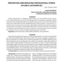 Administrația publică este supusă unor reforme de amploare ca urmare a tranziției țării la economia de piață liberă și dezvoltarea socială. Prin urmare, angajații autorităților publice se confruntă cu un mediu de lucru extrem de solicitant și în schimbare rapidă care cere atât competențe tot mai aprofundate cât și politici ale resurselor umane bine stabilite. În acest studiu se argumentează că stresul este un fenomen cu care se confruntă personalul autorităților publice și care are consecințe negative asupra sănătății angajaților și eficacității autorităților publice. În această privință, este important ca, atât la nivel național cât și la cel al autorităților publice, să se întreprindă acțiuni comune pentru prevenirea și diminuarea stresului în activitatea persoanelor angajate de autoritățile publice.