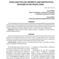 Acest articol abordează aspecte relevante care vizează contextul geopolitic actual în zona Pacificului și rolul predominant pe care îl joacă China în această parte a Lumii. Prin prisma analizei se trec probleme importante ce țin de strategiile geopolotice ale Chinei: competiția ei economică, politică și militară cu mai multe țări și, în primul rând, cu SUA.