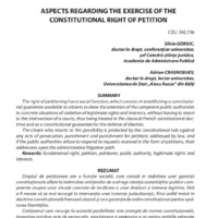 The right of petitioning has a social function, which consists in establishing a constitutional guarantee available to citizens to draw the attention of the competent public authorities to concrete situations of violation of legitimate rights and interests, without having to resort to the intervention of a courts, thus being treated in the classical French constitutional doctrine and as a constitutional guarantee for the defense of liberties. The citizen who resorts to this possibility is protected by the constitutional rule against any acts of persecution, punishment and punishment for petitions addressed by law, and if the public authorities refuse to respond to requests received in the form of petitions, their addressees open the administrative litigation path.