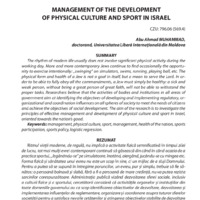 The rhythm of modern life usually does not involve significant physical activity during the working day. More and more contemporary Jews continue to find occasionally the opportunity to exercise intentionally: ,,swinging” on simulators, swims, running, playing ball, etc. The physical form and health of a Jew is not a goal in itself, but a mean to serve the Lord. In order to be able to fully obey all the commandments, a Jew must simply be healthy: a sick and weak person, without being a great person of great faith, will not be able to withstand the proper tasks. Researchers believe that the activities of bodies and institutions in all areas of government aim at identifying the objectives of developing and implementing regulatory, organizational and coordination influences on all spheres of society to meet the needs of citizens and achieve the objectives of social development. The aim of the research is to investigate the principles of effective management and development of physical culture and sport in Israel, oriented towards the nation’s goo.
