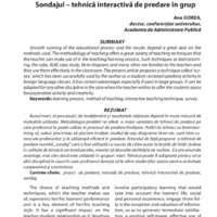 Bunul mers al procesului de învățământ și rezultatele obținute depind în mare măsură de metodele utilizate. Metodologia predării ne oferă o mare varietate de tehnici de predare pe care profesorul le poate utiliza în procesul de predare/învățare. Astfel de tehnici ca brainstorming-ul, cubul, știu/vreau să știu/am învățat, studiul de caz, diagrama Venn etc. sunt bine cunoscute profesorilor și le utilizează eficient în predare. Articolul de față propune o tehnică de predare numită ,,sondaj” care a fost utilizată cu succes de către autor la lecțiile de limbi străine în calitate de tehnică centrată pe elev, menită să dezvolte abilitățile de vorbire. Ea are anumite avantaje, mai ales dacă este utilizată în grupuri mari. Tehnica poate fi adaptată pentru orice altă disciplină în cazul în care profesorul dorește să le ofere studenților spațiu pentru activitate cooperativă și creativitate.