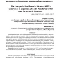 The changes in Healthcare in Ukraine: NATO’s Experience in Organizing Health Assistance within some Exceptional Situations